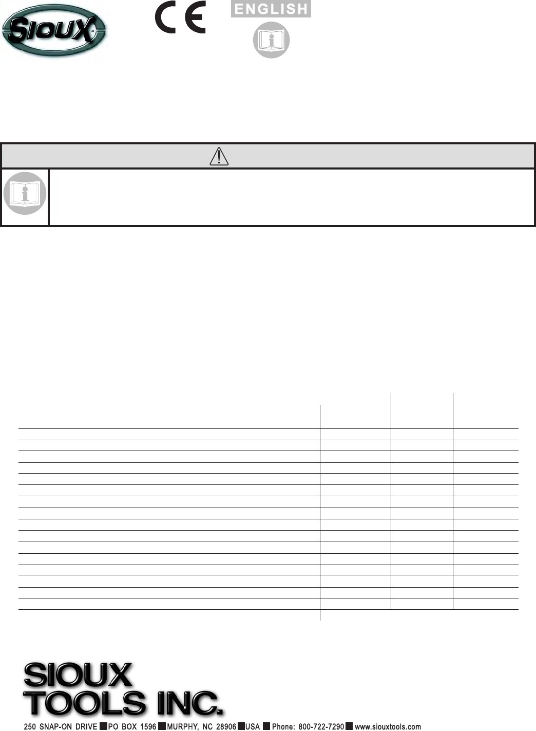 3DRUCKLUFTZUFUHRDie Werkzeugleistung hängt von der ordnungsgemäßen Zufuhr von sauberer, trockener Luft mit einem Druck von 90 psig (6,2 bar) ab. Die V